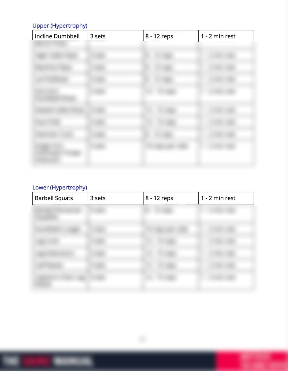 - Example of a Intermediate Gym Training Program - UPPER/LOWER SPLIT